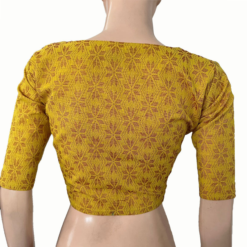 Jacquard Cotton Diamond neck Blouse with Lining, Yellow, BH1262