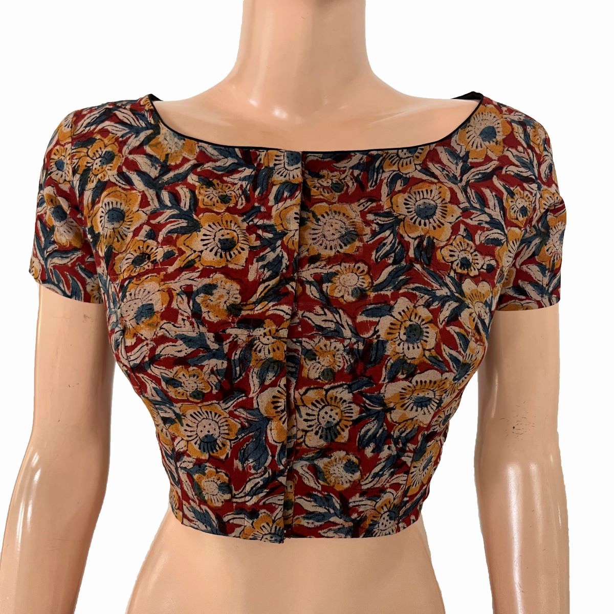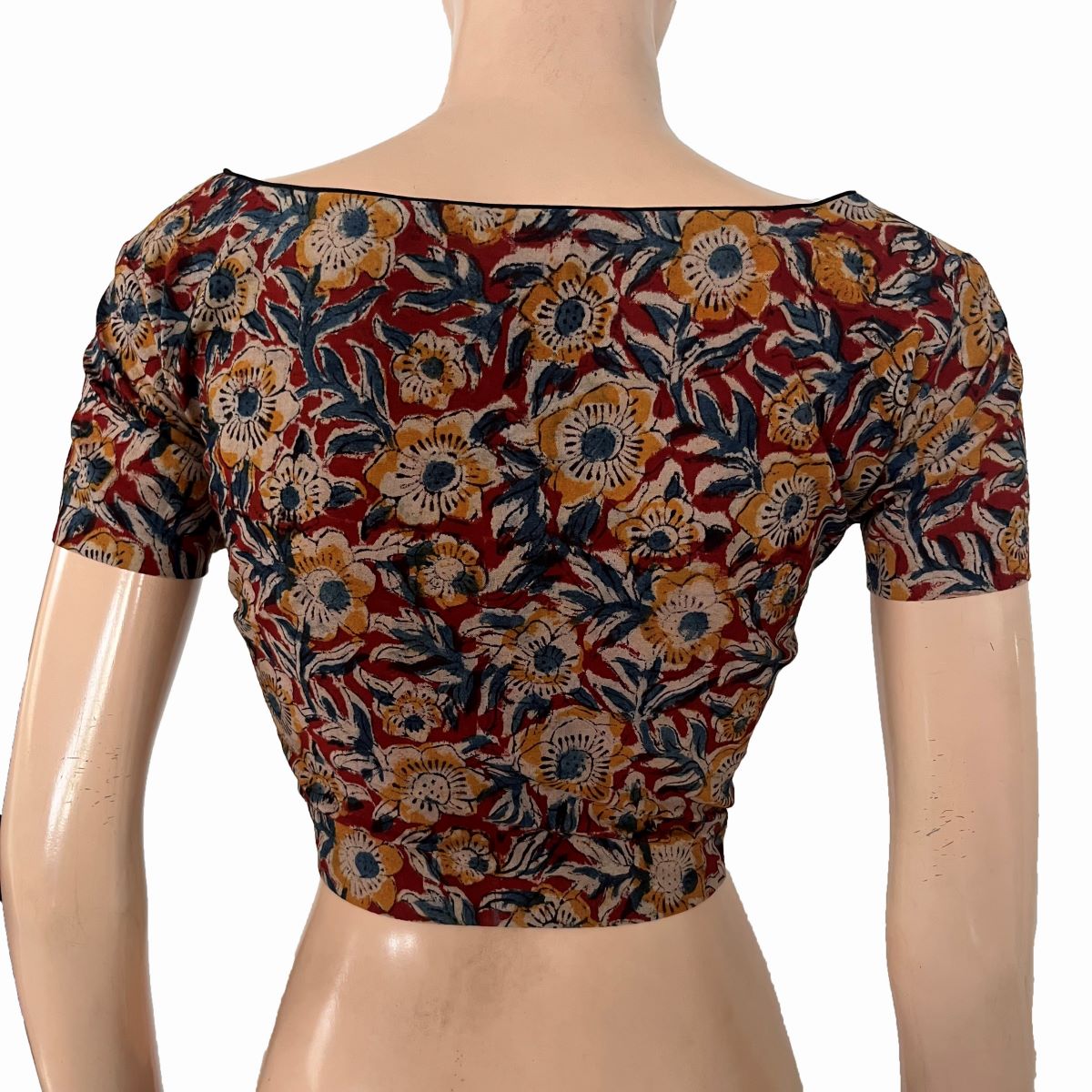Kalamkari Cotton Boat Neck Blouse with Short Sleeves ,Multicolor, BK1311