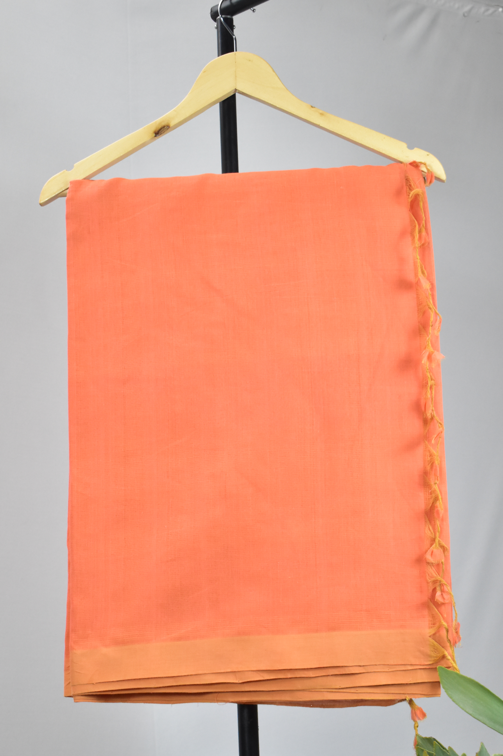 Pure Handloom Mangalgiri Plain Cotton Saree with Tassles, Orange, SR1040